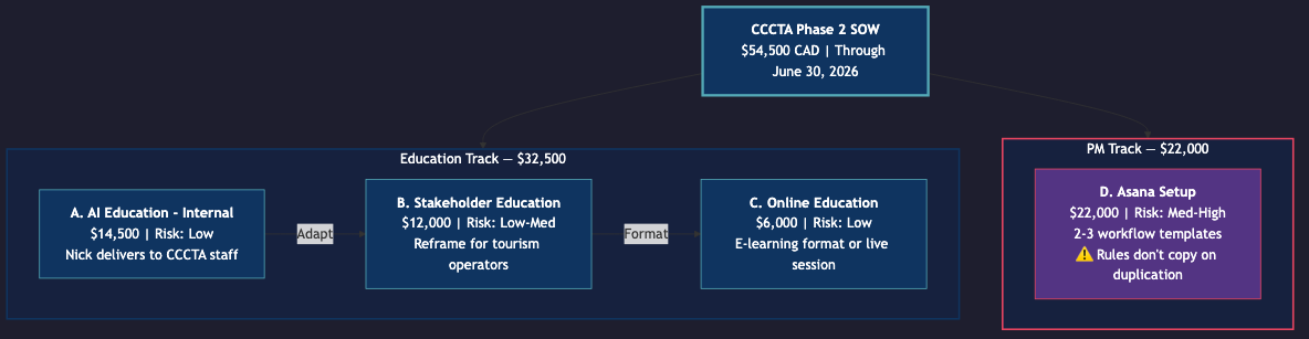 Client: Central Coast Chilcotin Tourism Association (CCCTA) SOW Value: $54,500 CAD | 4 Workstreams | Term: Through June 30, 2026 Prepared for: Ryan Monsurate & Gurinder Parmar Date: March 3, 2026
